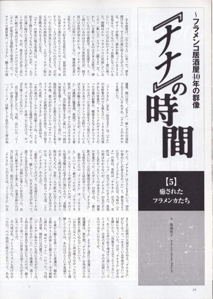 川島桂子が『ナナ』を訪ねたのは90年頃だ。その2年前にフラメンコのカンテを初めて聞いてショックを受けた川島は、踊りを習ったりもしていたものの、主にカンテを知りたくて情報を求めていた。